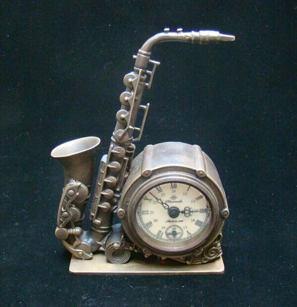 Collectible Handmade Carving Statue saxophone Bronze Mechanical Clock Art Deco