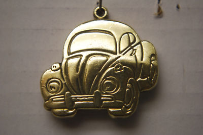 vintage old VW bug charm keychain heavy cast brass