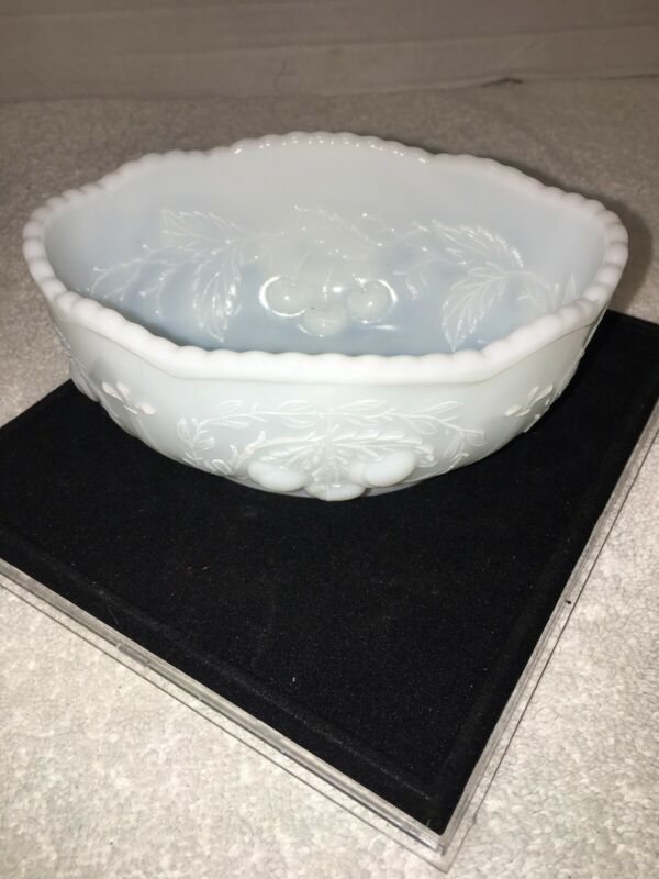 VINTAGE OPAQUE MILK GLASS OVAL BOWL DISH CHERRIES WHITE