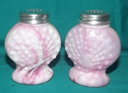 Fenton Hobnail swirl cranberry milk glass salt and pepper shakers clam shell