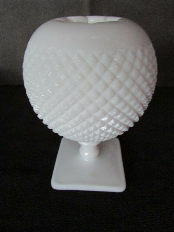Title (ebay affiliate link): White Milk Glass Diamond Pattern Rose Bowl on Pedestal D-41