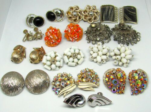 Title (ebay affiliate link): 13 ESTATE VINTAGE EARRING LOT MOST SIGNED RHINESTONE AB CRYSTAL MILK GLASS ETC.