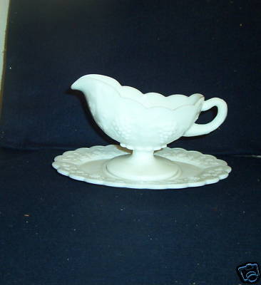 MILK GLASS GRAVY AND UNDER PLATE WESTMORLAND? GRAPE