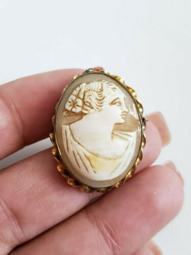 Title (ebay affiliate link): Antique 12K Gold Filled Maiden Shell Cameo Brooch Pendant Pin, Estate Jewelry
