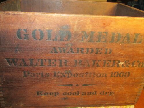 AWESOME 1900 PARIS EXPO GOLD MEDAL AWARDED WALTER BAKER & CO.CHOCOLATE WOOD BOX