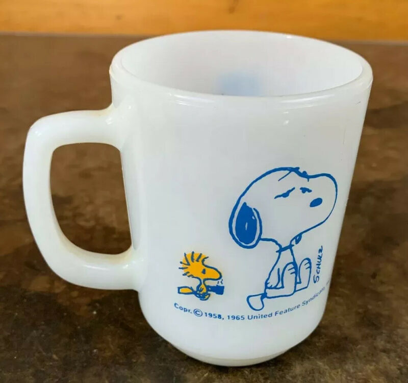 Vtg Snoopy Fire King 1965 "I Am Not Worth A Thing Before Coffee" Milk Glass Mug