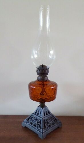 Victorian oil lamp hand blown Honey comb glass font cast base working order