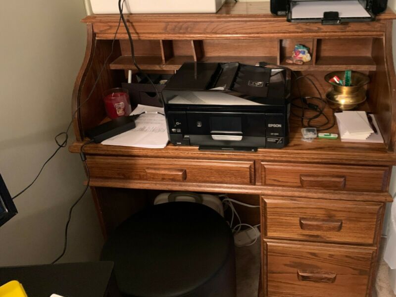 desk roll top; Oak 4 drawers, Used