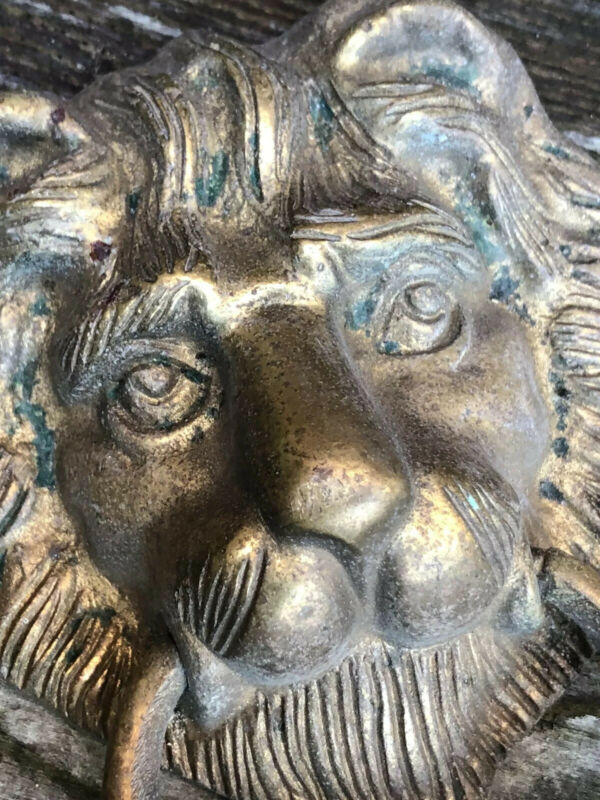 Title (ebay affiliate link): Vintage Cast Brass Lion Mask Face Door Knocker Furniture Display Retro REPRO