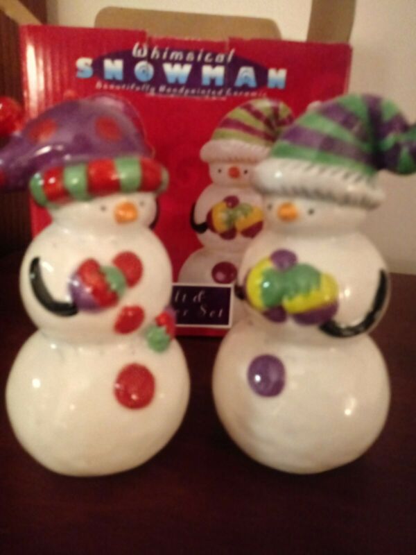 Title (ebay affiliate link): Vintage Christmas salt and pepper shakers. " Whimsical Snowmen"