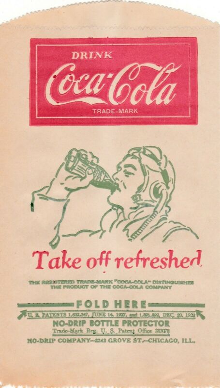 Title (ebay affiliate link): DRINK COCA-COLA 1940s illustrated"no-drip bottle protector" TAKE OFF REFRESHED