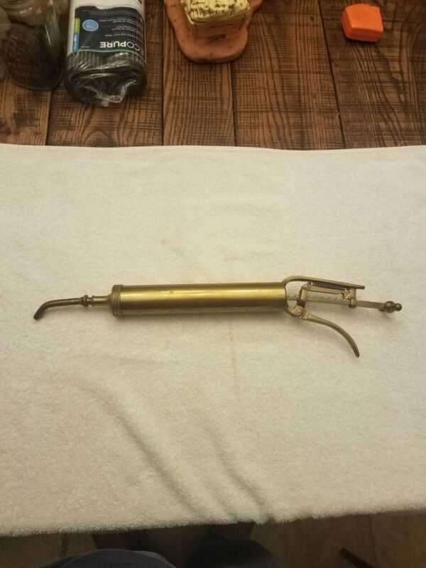 Title (ebay affiliate link): Vintage Brass Grease Gun Old Tools Antique Automotive motorcycle bicycle
