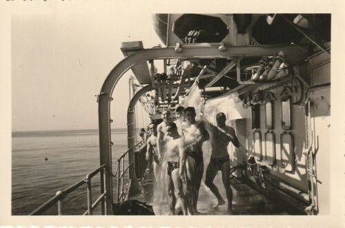Vintage photograph, good looking sailors outdoor showering, gay interest