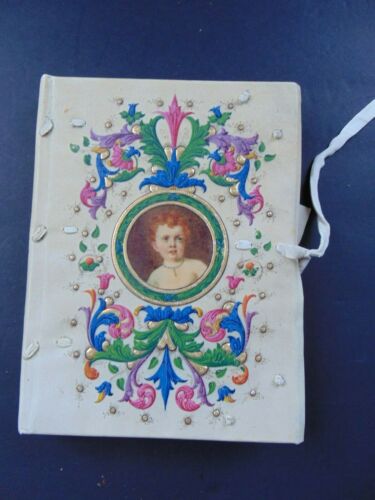 Title (ebay affiliate link): ANTIQUE HANDMADE DECORATIVE VELLUM BOOK with MANUSCRIPT POETRY