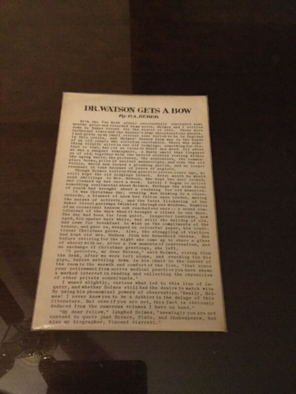 Title (ebay affiliate link): Scarce Sherlock Holmes Pamphlet, Dr. Watson Gets A Bow, BSI Dinner 1962