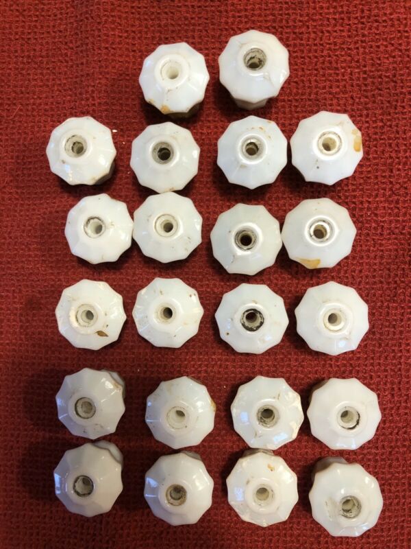 Set Of 22 Antique Vintage Milk Glass 1 1/4" Decagon Knob Pull Cabinet Drawer