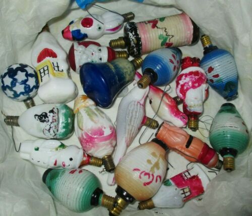 Antique Lot 19 Vintage Mid Century Milk Glass Screw Bulb Christmas Ornaments