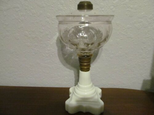 Title (ebay affiliate link): Antique Art Nouveau Victorian Milk Glass Whale Oil / Kerosene Lamp Spill Guard