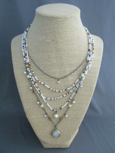 VINTAGE SILPADA STERLING MULTI STRAND MILK GLASS BEAD MOP TEARDROP NECKLACE