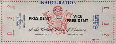 1981 Ronald Reagan President Inauguration FULL TICKET!!