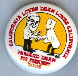 HOWARD DEAN CALIFORNIA 1004 POLITICAL PIN BUTTON