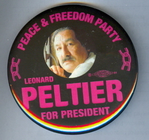 Title (ebay affiliate link): LEONARD PELTIER PEACE AND FREEDOM PARTY 2004 PIN