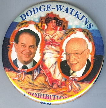 PROHIBITION PARTY 2000, DODGE AND WATKINS JUGATE PIN