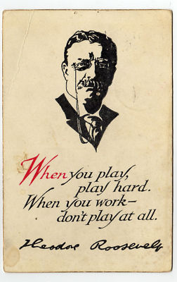 Title (ebay affiliate link): POSTCARD c1909 THEODORE ROOSEVELT PLAY HARD WORK HARD