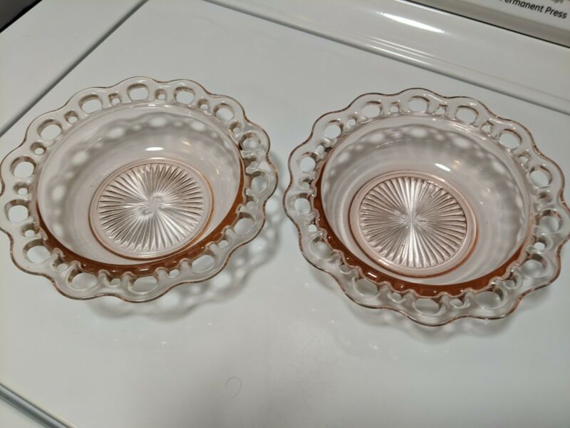 Title (ebay affiliate link): Vintage OLD COLONY LACE EDGE OPEN PINK DEPRESSION GLASS SERVING BOWL 7 3/4"