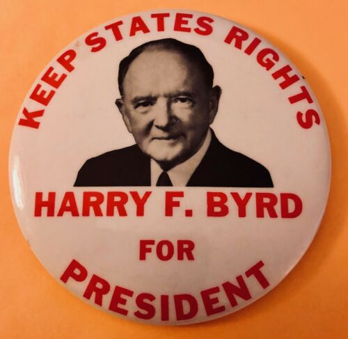 Title (ebay affiliate link): Unique 3 1/2" Keep States Rights Harry F. Byrd for President Campaign Pin, 1960
