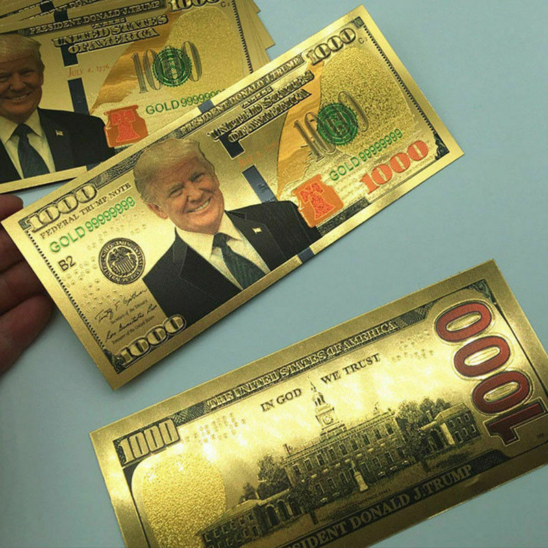 Title (ebay affiliate link): 1PC President Donald Trump New Colorized $1000 Dollar Bill Gold Foil Banknote L