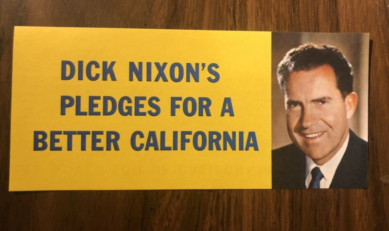 Title (ebay affiliate link): RARE! 1962 RICHARD NIXON CAMPAIGN ELECTION GOV. OF CALIFORNIA FLYER PAT BROWN