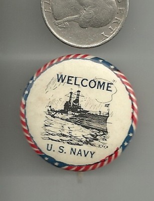 Title (ebay affiliate link): Patriotic Pinback "Welcome U S Navy"nice color 1930s