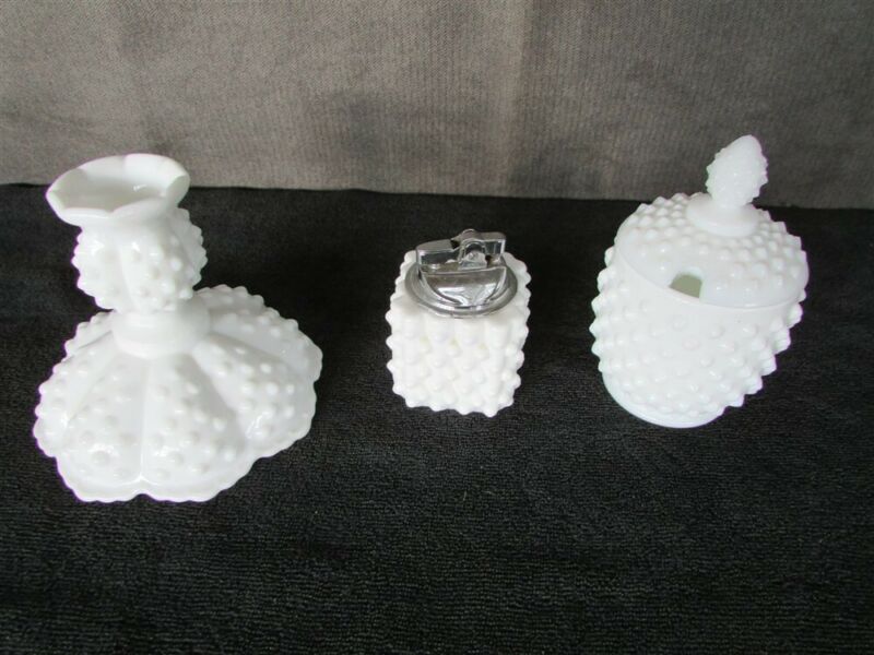 3 Assorted White Milk Glass Hobnail Pieces D-70
