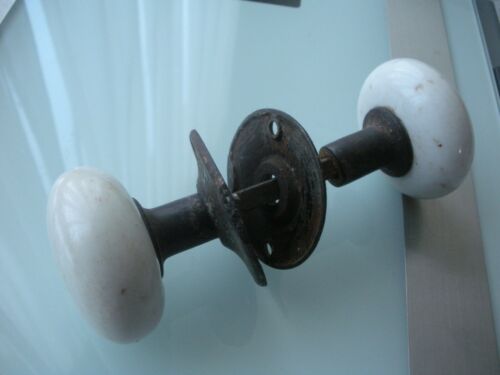 Antique DOOR KNOB set, smooth White Milk Glass Original 1800''s