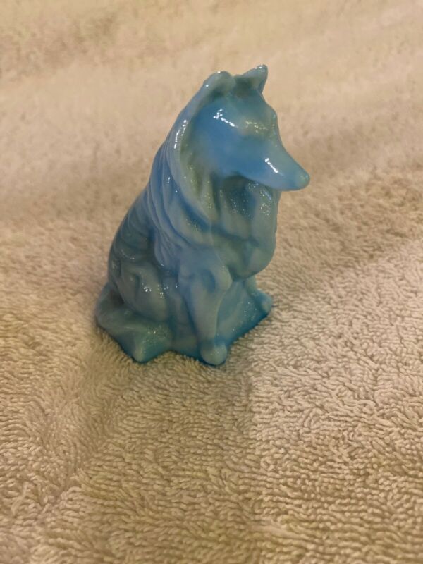 Title (ebay affiliate link): Mosser Collie Blue Milk Glass Dog Figurine ** Beautiful Shades of Blue!**