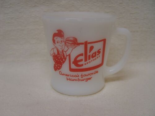 Fire-King ELIAS BROS. Bob''s Big Boy Hamburgers Milk Glass D Handled Coffee Mug