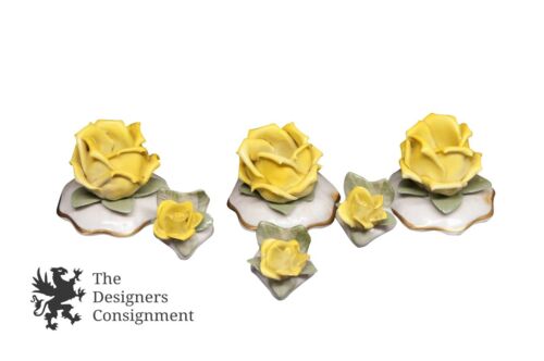 Title (ebay affiliate link): 3 Capodimonte Yellow Porcelain Rose Candle holders Ornate Flowers Light