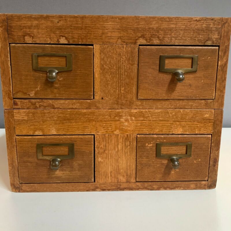 Pair of stackable 2 Drawer (= 4 Drawer) Card File Cabinet Library Card Catalogs