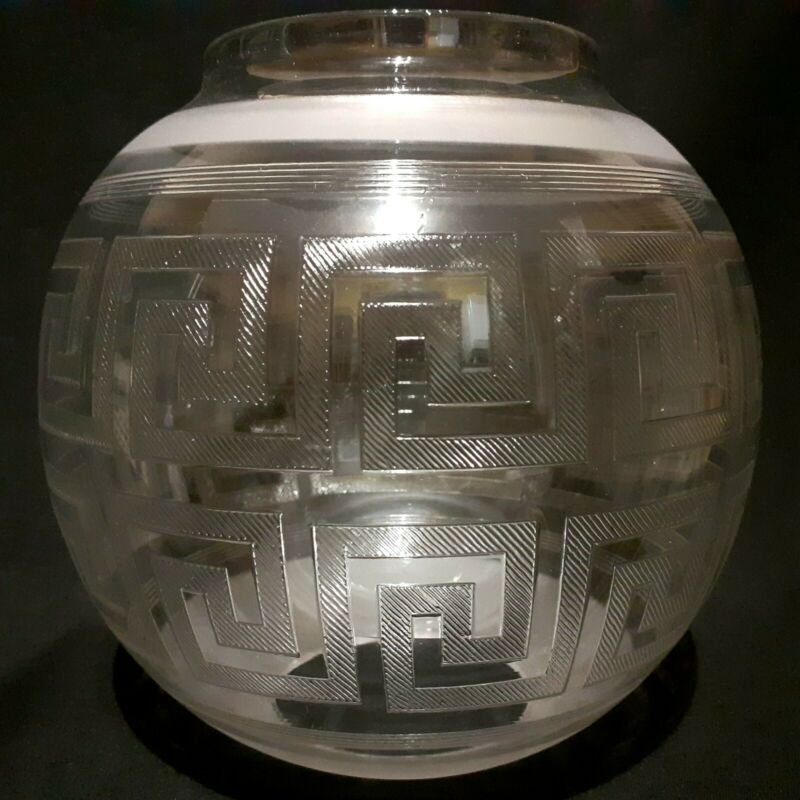 Greek Keys Design Glass Oil Lamp Shade 4" Fit Diameter Height 7.25 Inches
