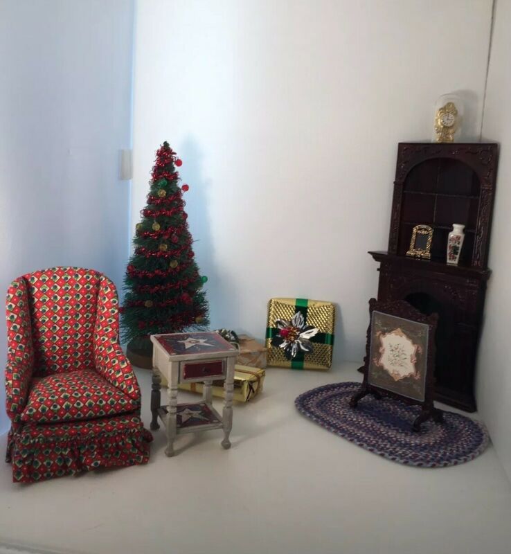 Title (ebay affiliate link): Vtg Dollhouse CHRISTMAS Tree Living Room Furniture 16 Pcs. Fireplace Lovely