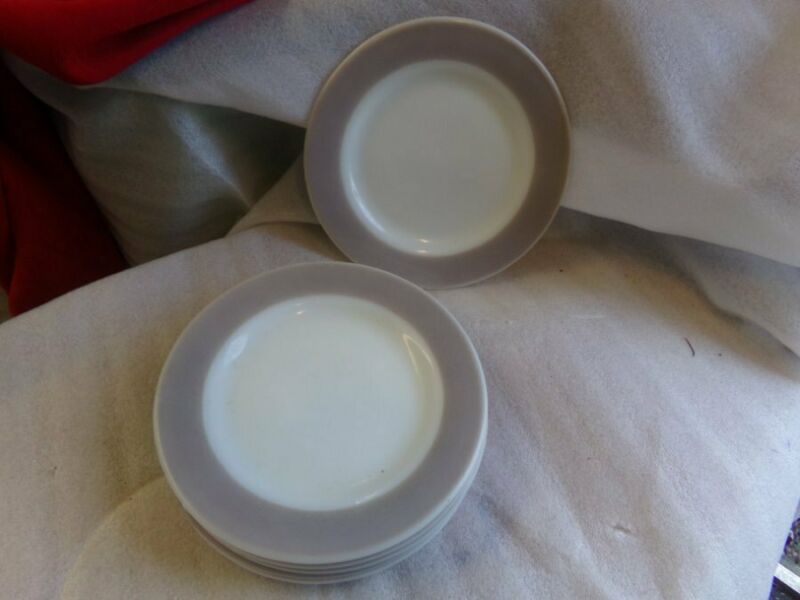 6 Vintage Pyrex Platinum Sprayed Borders Grey Milk Glass Salad/Dessert Plates