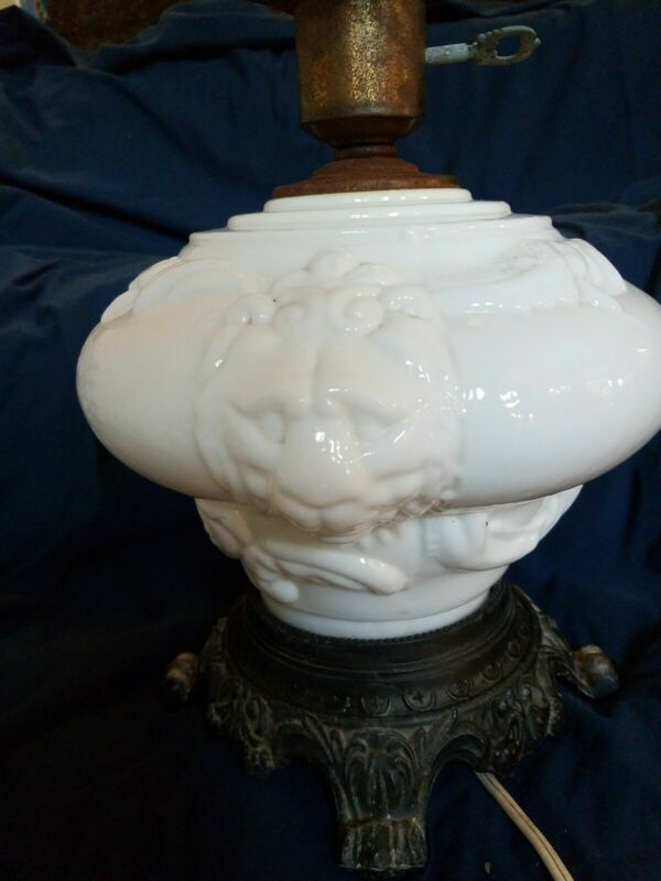 Milk glass lion head lamp body. Gone With the Wind Style. Parlor lamp. Vintage
