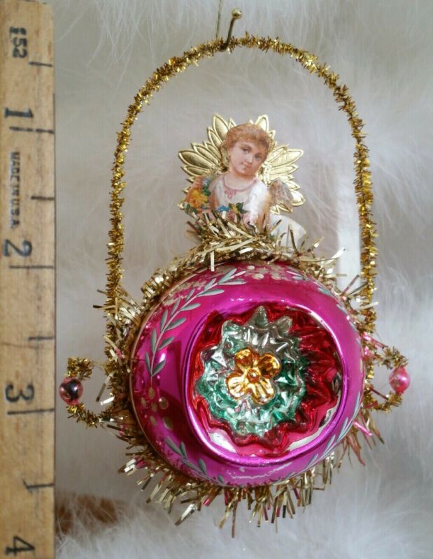 Title (ebay affiliate link): Antique Mercury Glass Ball Ornament Embellished w/ DieCut Angel Dresden Trim