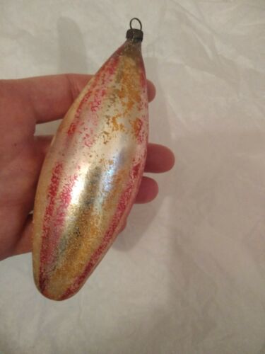 Vintage antique Mercury Glass ChriSTMAS ORNAMENT GERMANY FIGURAL torpedo