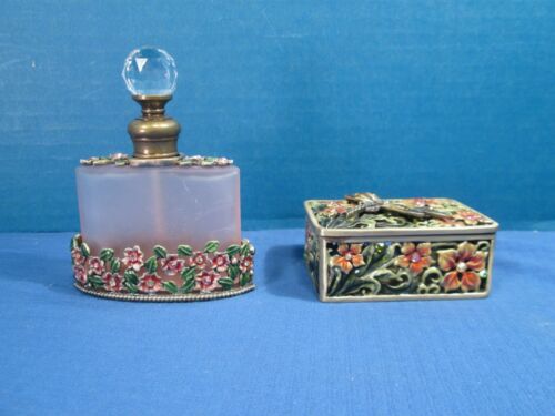 Title (ebay affiliate link): PERFUME BOTTLE & COMPANION TCHOTCHKE BOX - ENAMELED PINK FROSTED GLASS BOTTLE