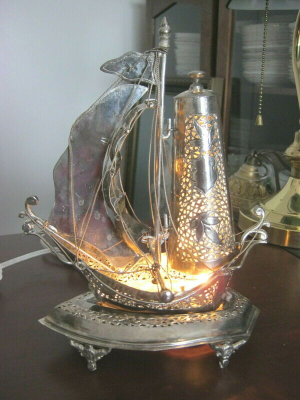 Title (ebay affiliate link): ANTIQUE VINTAGE PIERCED SILVERPLATED METAL NIGHT LIGHT SAILING SHIP UNIQUE