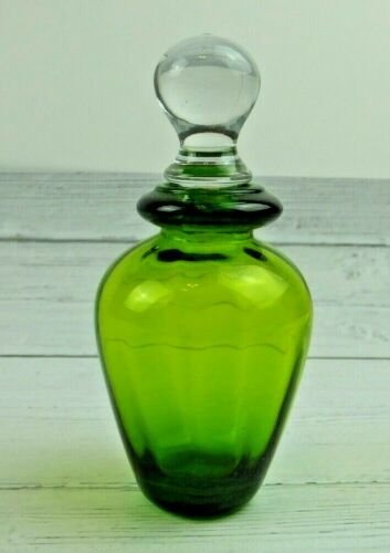 GREEN VINTAGE GLASS PERFUME BOTTLE W/ROUND LID STOPPER