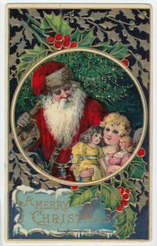 Title (ebay affiliate link): Santa Claus with Little Girl ~Dolls~Holly~Antique Christmas Postcard-m844