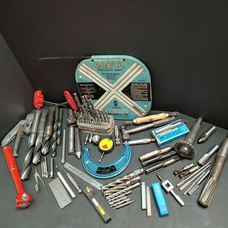 Machinist Tool Lot Starrett Cleveland + End Mill Tap Drill Micrometer Mitutoyo